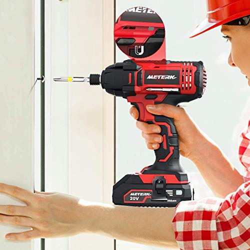 Atornillador de Impacto, Meterk 180Nm Pistola de Impacto 20V, Velocidad Máxima de 2800 RPM, Batería de 2000mAh, 2.4A cargador rápido de y 1/4" Portabrocas Rápido